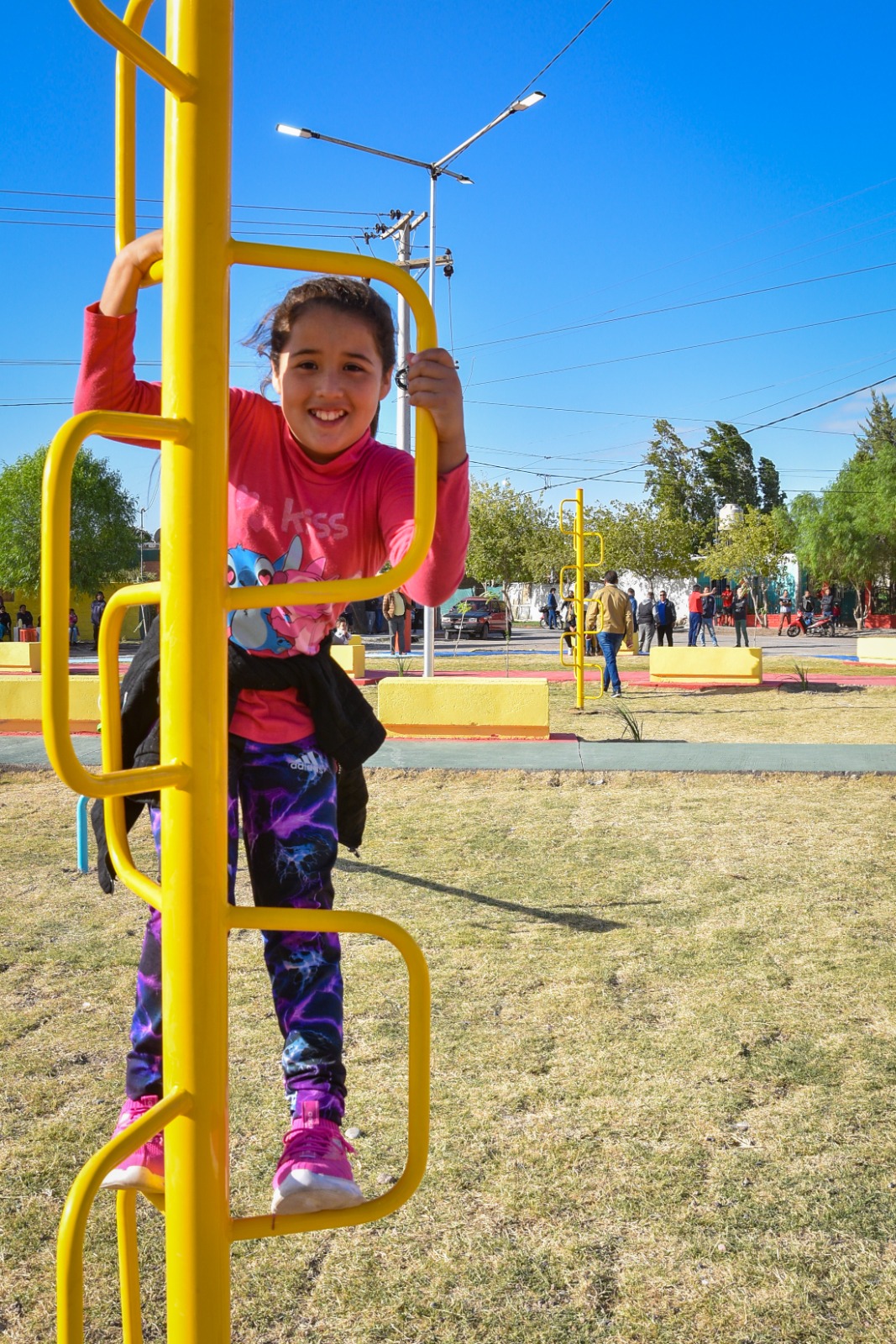 En la plaza, se remodelaron las veredas en su totalidad, se realizaron 80 metros de cordón zapata, se instalaron 14 bancos de hormigón y 4 rampas de acceso. Para el cuidado y limpieza del lugar se colocaron cestos para residuos. Los más chicos también tienen para su entretenimiento ya que se dispusieron 2 mangrullos, 4 trepadores, 4 sube y baja.