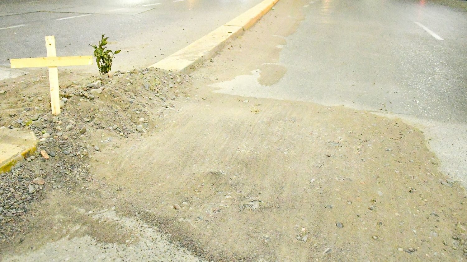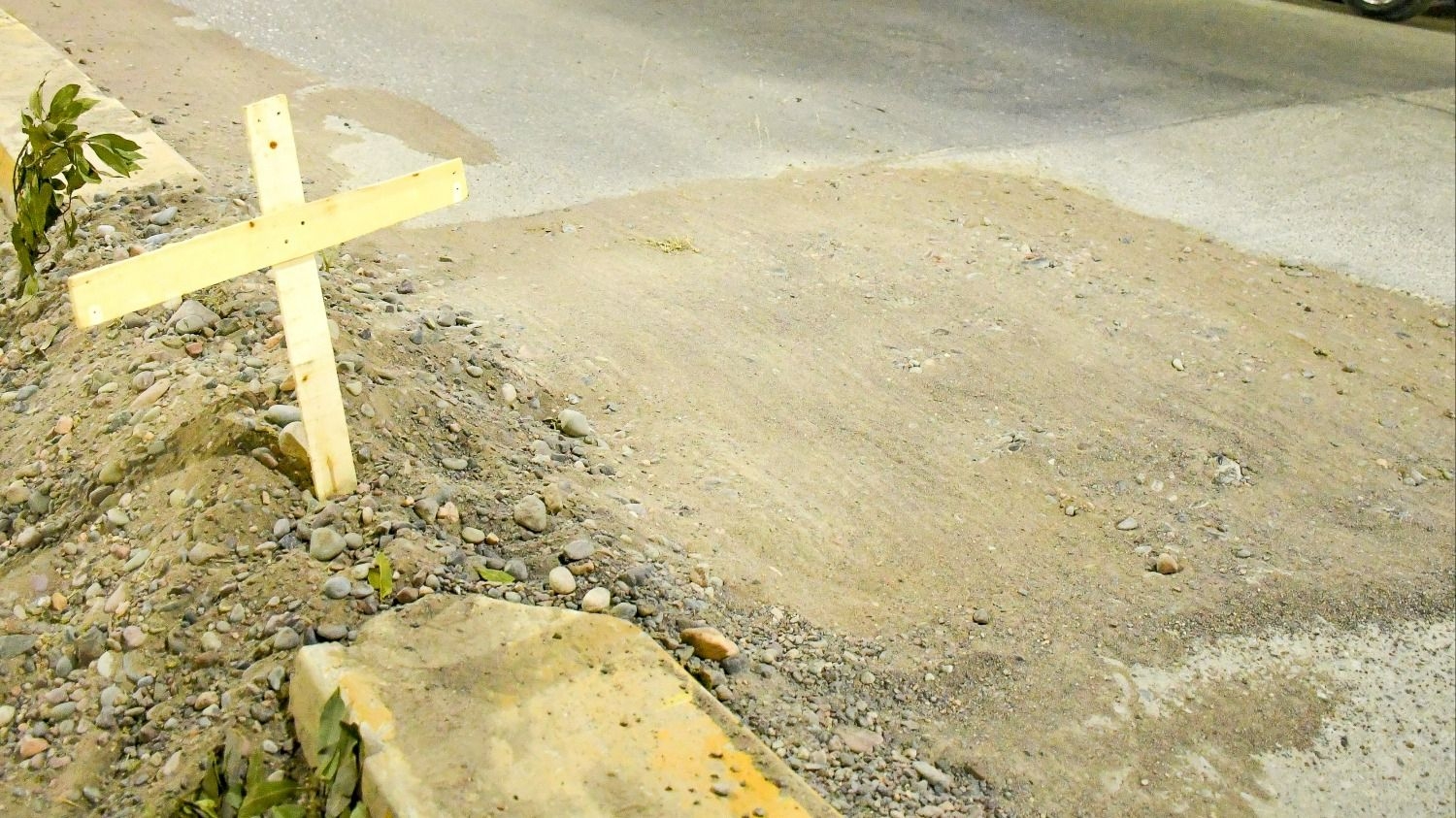En la tarde del viernes 25 de agosto, DIARIO HUARPE recibió un reclamo por parte de los vecinos y comerciantes de la zona. Es que sobre el boulevard de Avenida Rioja, entre Belgrano y O’Higgins, en Capital, se produjo un bache que tras varios reclamos no fue solucionado. Es por eso que lo señalizaron con ramas y le pusieron hasta una cruz simulando una tumba.