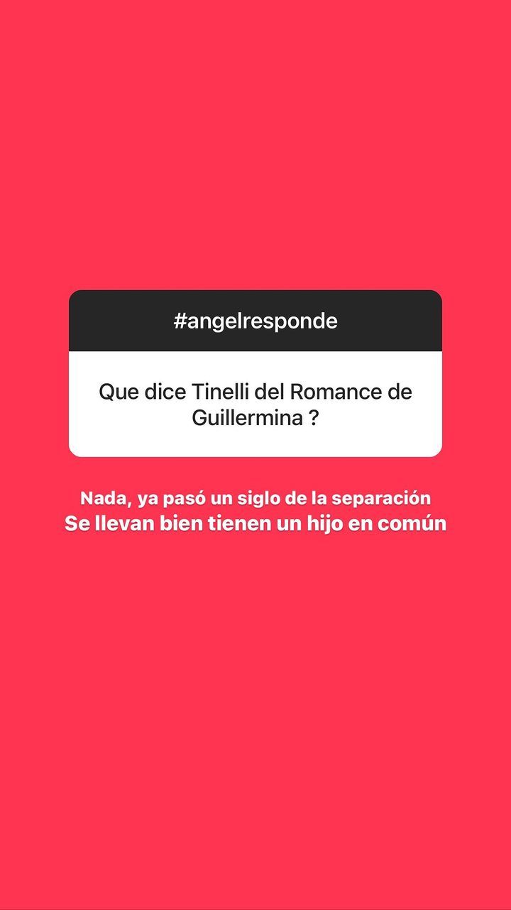 Al confirmar el incipiente romance, los seguidores le preguntaron a Ángel de Brito cuál fue la reacción de Marcelo Tinelli al saber que su expareja inició un nuevo vínculo amoroso con alguien más. Cabe recordar que Guillermina Valdés también tuvo un affeire con Santiago Maratea.