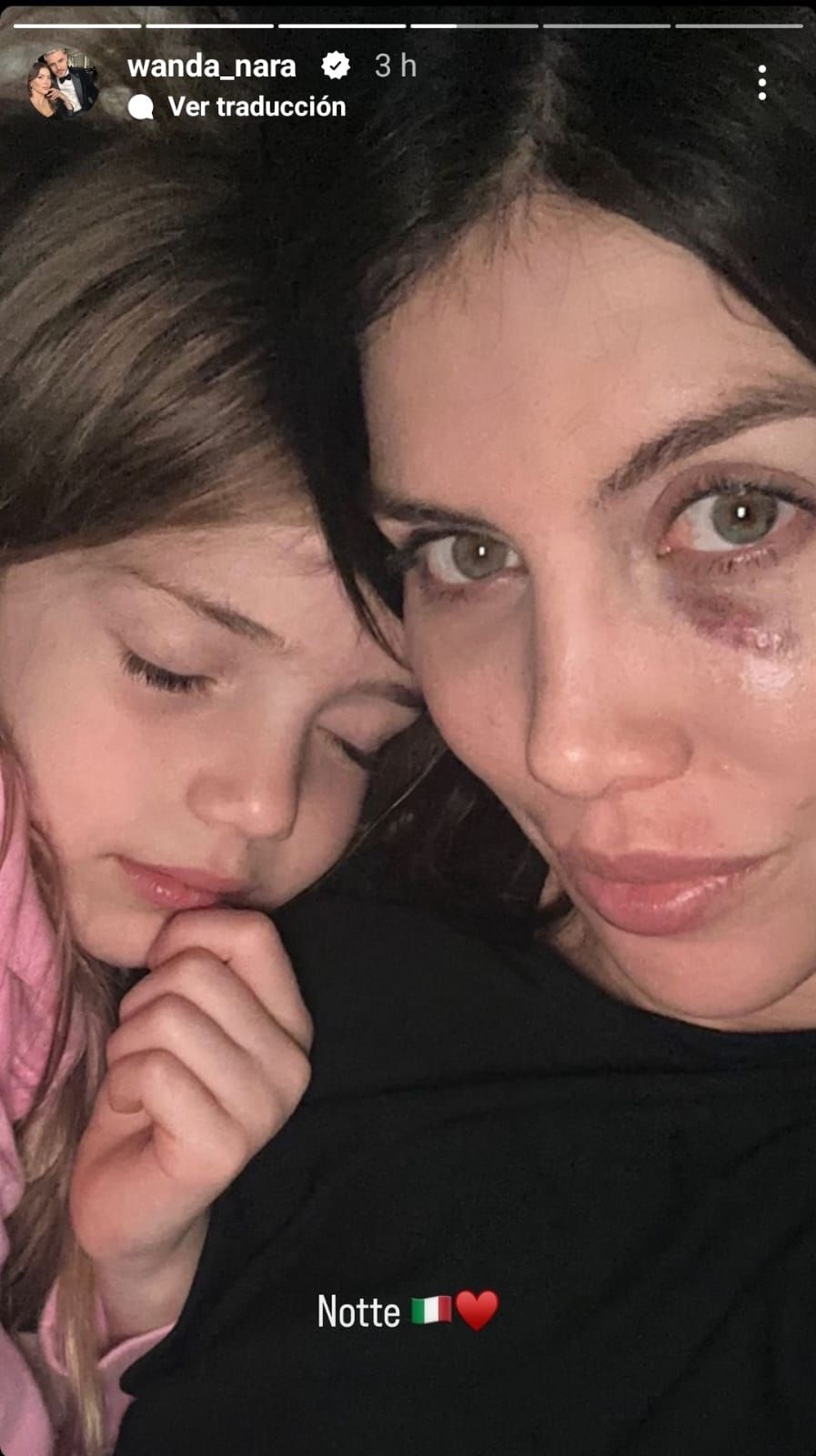 La esposa de Mauro Icardi mostró en un video como fue el fuerte golpe que sufrió que le dejó un moretón en uno de sus ojos.