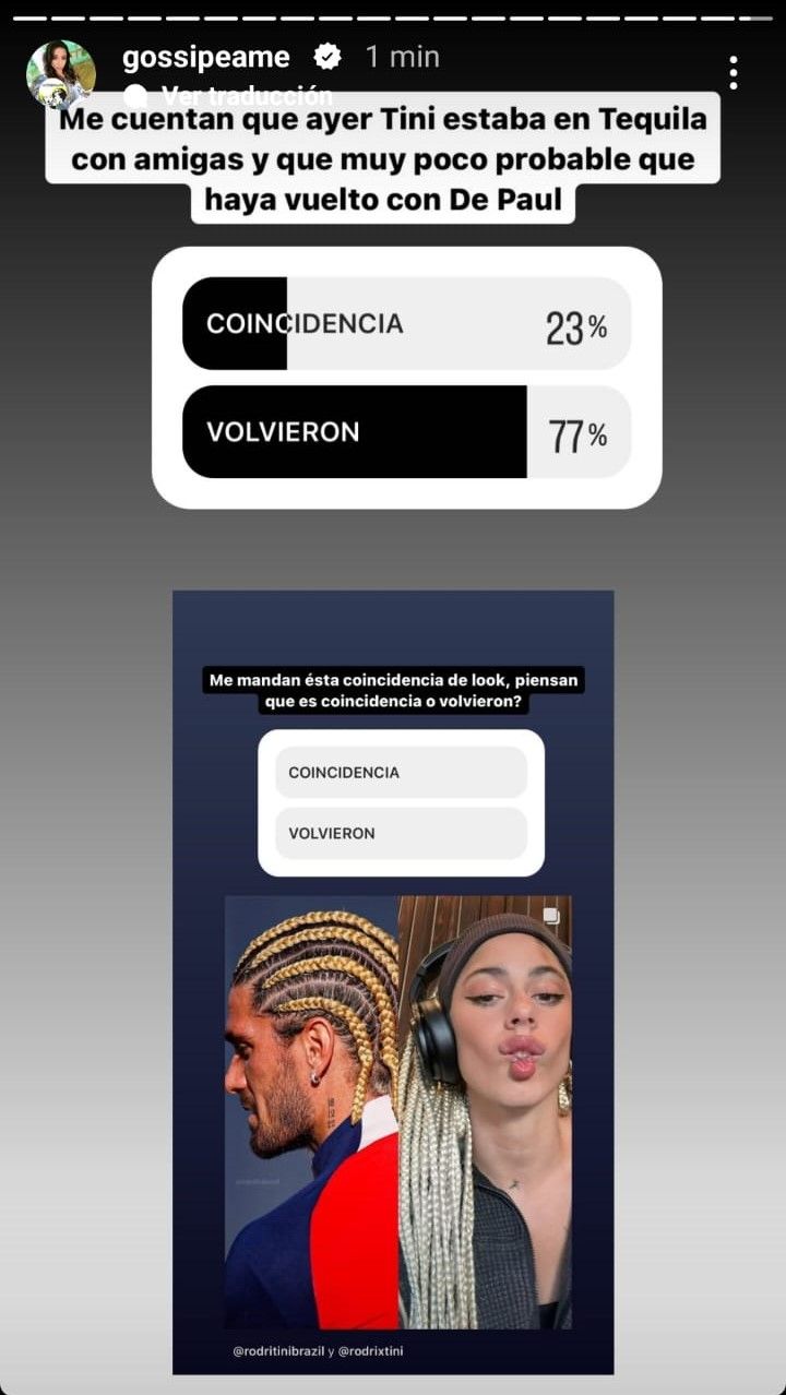 Rodrigo de Paul y Tini Stoessel volvieron a coincidir, aunque Pochi de Gossipeamelanzó una bomba en sus historias de Instagram. La periodista explicó que ve difícil una reconciliación debido a que la cantante estuvo presente el 21 de diciembre por la noche en una fiesta llamada “Tequila” con sus amigas y explicó, según lo que percibieron sus fuentes, no es muy probable que el romance haya vuelto.