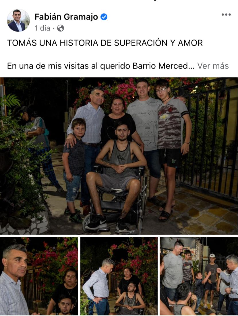 Tomás es un joven sanjuanino que sufrió un accidente en Mayo y estuvo varios meses para recuperarse. A causa del accidente el chico de 24 años está en silla de ruedas y por ello necesitaba un baño adaptado en su vivienda. Ante esta situación, su pequeño hermano Matías decidió escribirle una carta al intendente Fabián Gramajo contándole la historia de Tomas y la necesidad de contar con el techo para poder terminar el sanitario accesible.